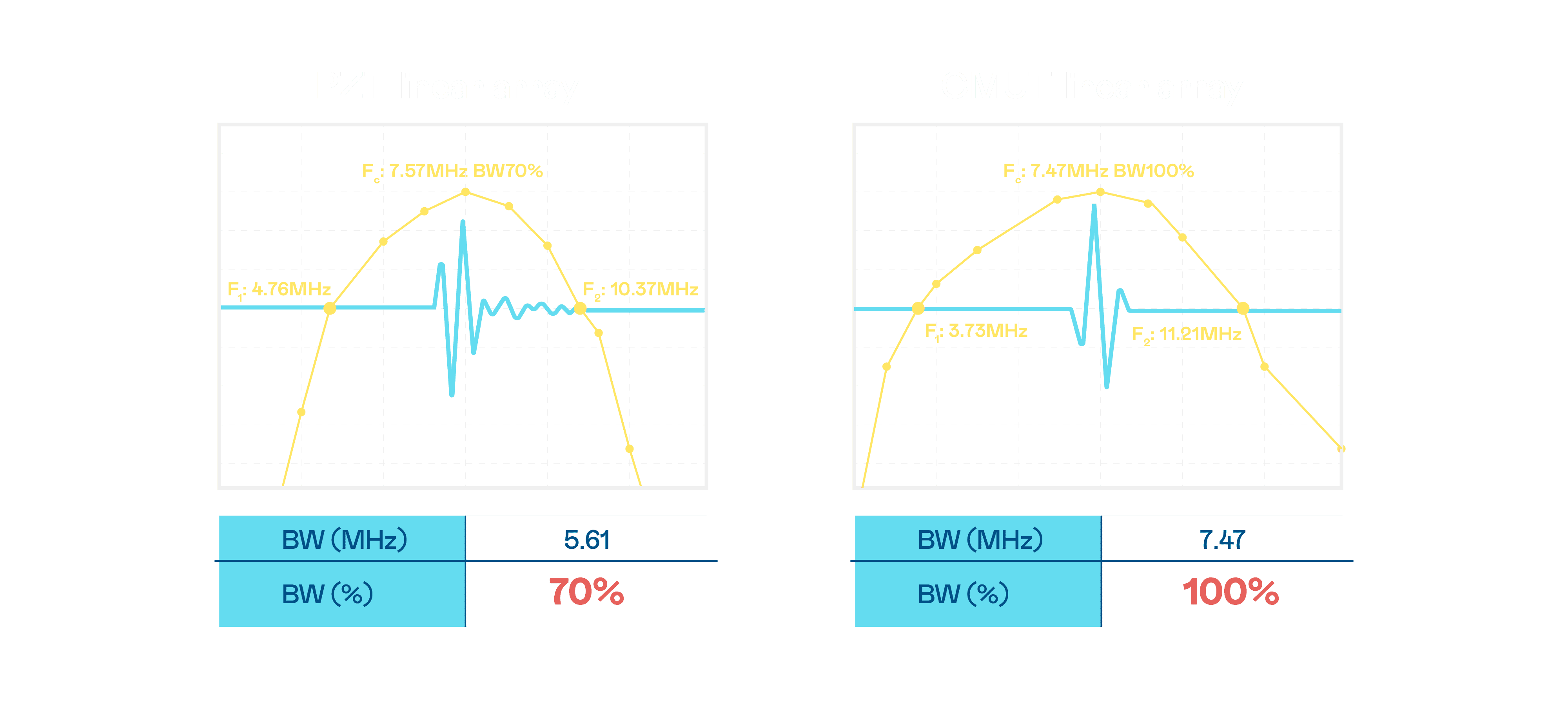 超音波影像的解析度高低,,,,首先取决于探头能发出的讯号频宽。。。龙门国际 CMUT 可提供高清晰的超音波讯号,,,,提供高频宽、、高灵敏度、、影像纹理细节更高的超音波影像,,,协助医护人员缩短影像判读时间及利用精准的医疗影像进行诊断。。。。