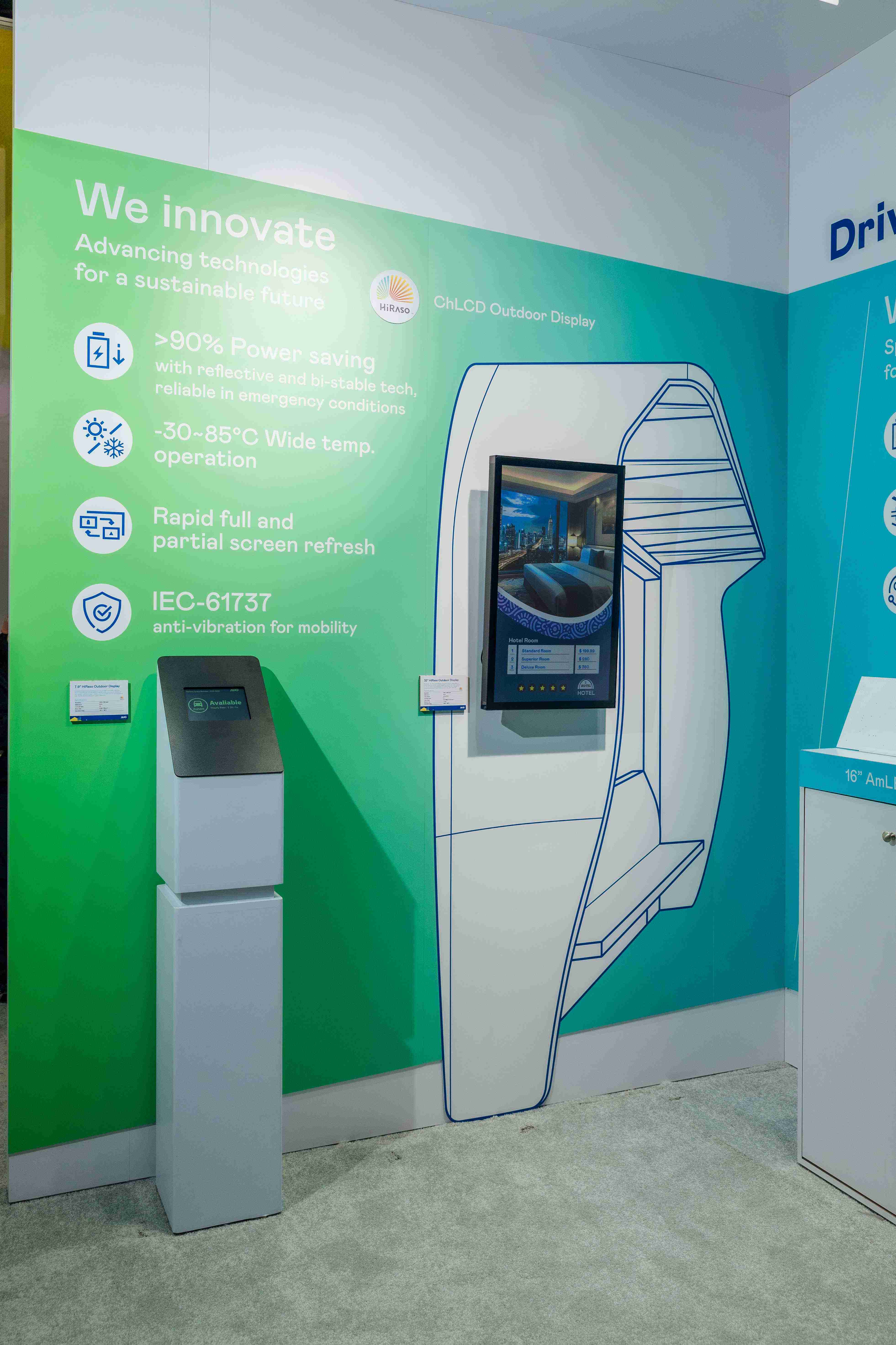 HiRaso胆固醇液晶显示器运用反射环境光线的方式,,,,呈现影像显示时零耗能的环保省电诉求,,光线愈强愈能呈现绝佳的色彩饱和度及显示效果,,,,同时在摄氏-30度至85度间宽温的使用优势,,,为户外电子看板的新首选。。