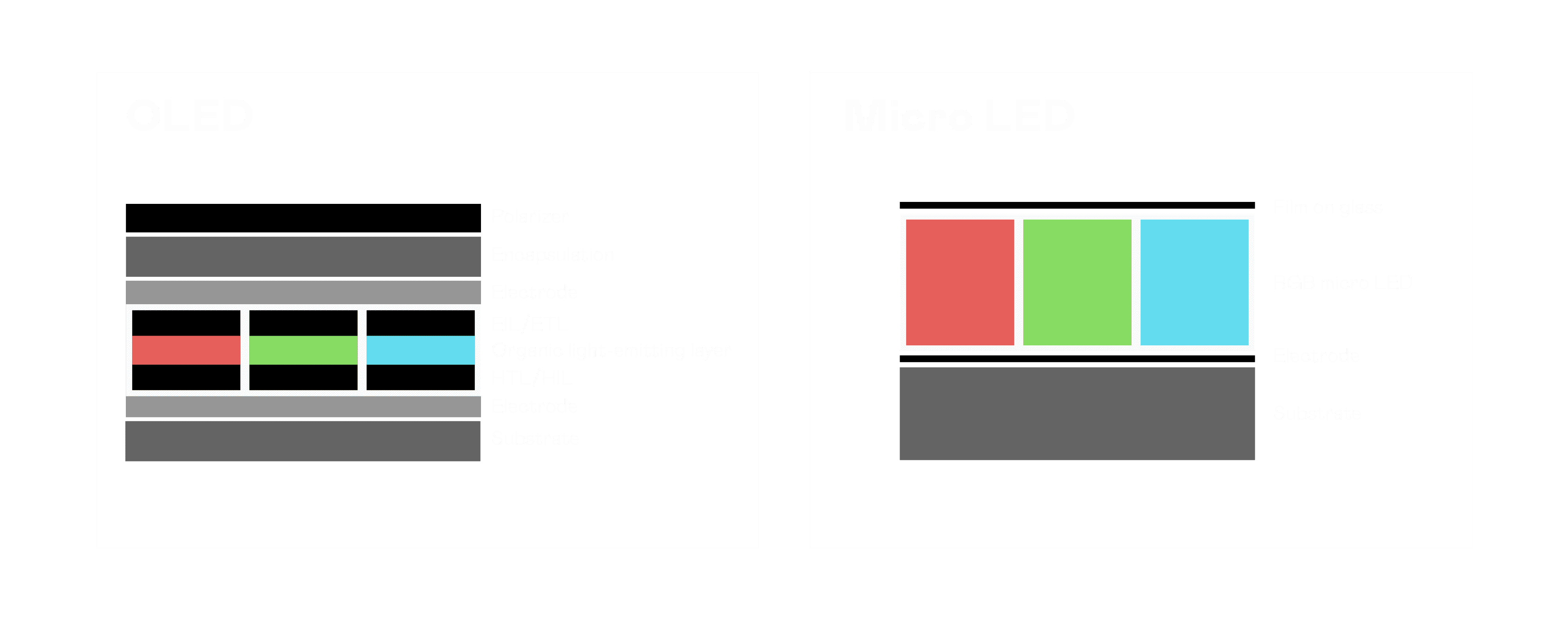 以 LED 做为显示画素,,,,可让 LED 的发光效率发挥到极致,,,从而让显示器具备优异的亮度表现,,,,不论是在户外或室内,,,,均具备出众的显示效果。。同时,,,与使用有机材料的 OLED 相比,,LED 具备更稳定、、、、寿命更长的特性,,不仅不会有画面烙印问题,,,而且更不容易出现故障、、、、坏点。。。
