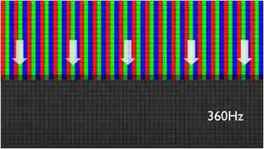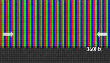 传统液晶驱动是从左到右单向进行,,在画面更新速度愈来越愈快的情况下,,,位于驱动线路末端的右下角区域,,画素的闸极来不及在短时间内获得足够电压,,,无法显示出正确的颜色资讯。。。
