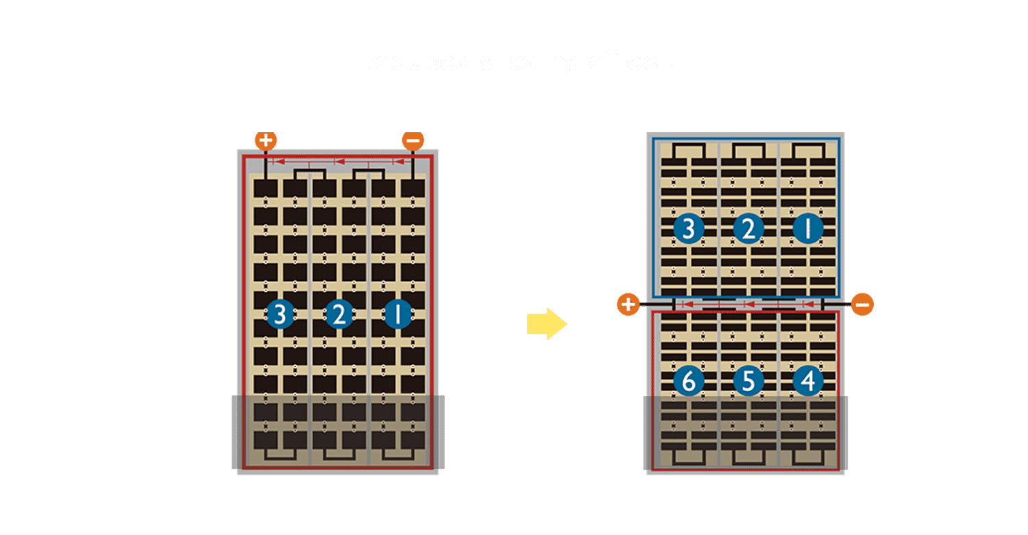 - 结合半切电池,,,,降低遮阴影响、、提升模组抗隐裂能力、、、、并减少电阻损耗,,,,进一步提升模组发电效能。。